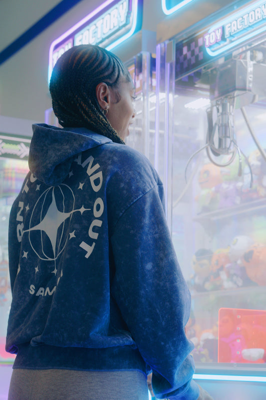 SAMARI BRAND BLUE ACID WASH CROPPED ZIP UP💙